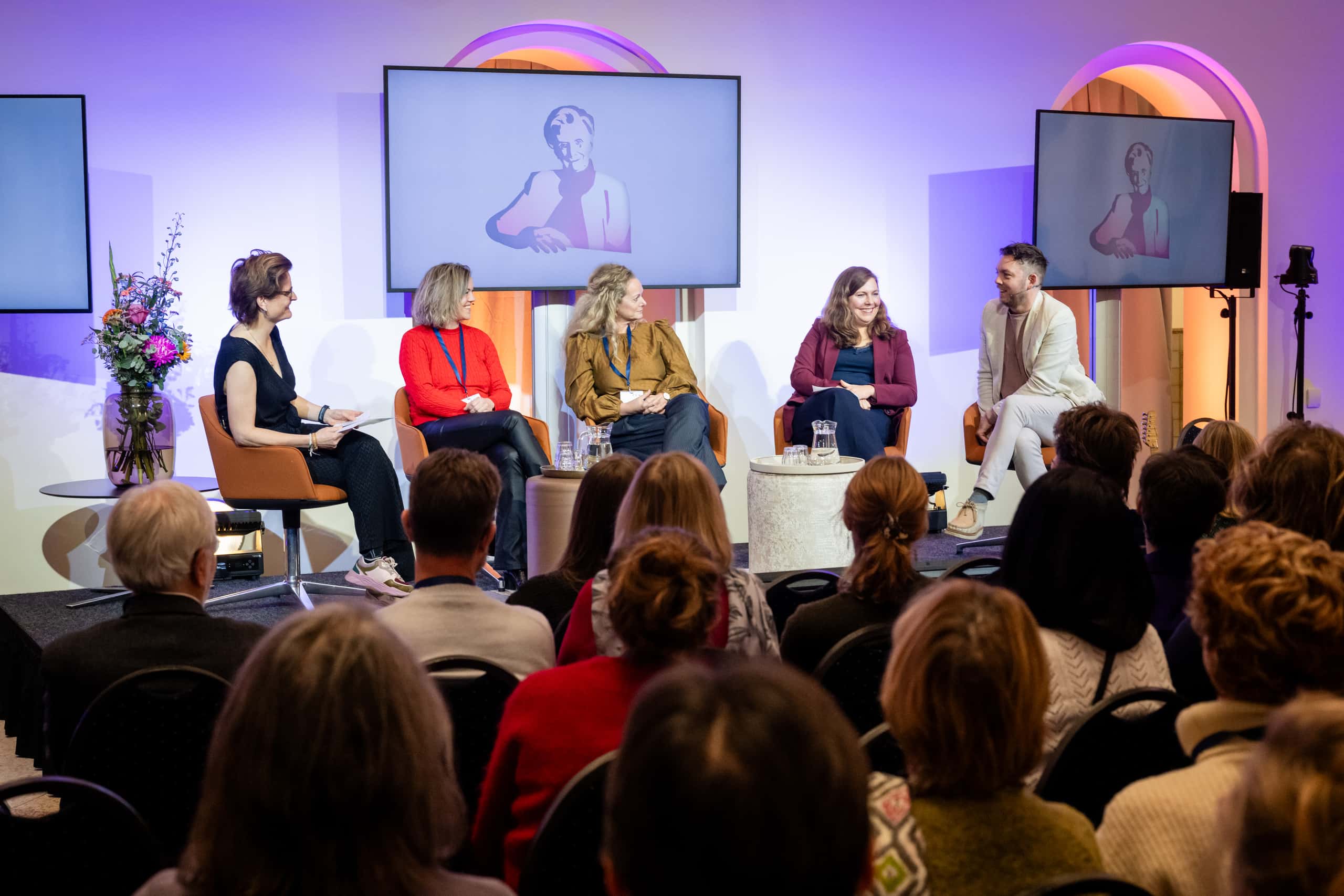 Voor het zaaldebat nemen Alistair Niemeijer, Bianca Buurman, verzorgende IG Angelique Hol en begeleidster Anne Karelse plaats op het podium. Martine de Vries modereert het gesprek. Als eerste vraagt ze om een reflectie op de lezingen. Anne Karelse antwoordt met kwetsbaarheid. Het treft een doelgroep die aandacht en begrip verdient. Angelique Hol geeft aan dat het begrip ‘nabijheid’ dat in beide lezingen terugkwam haar het meest bij blijft.