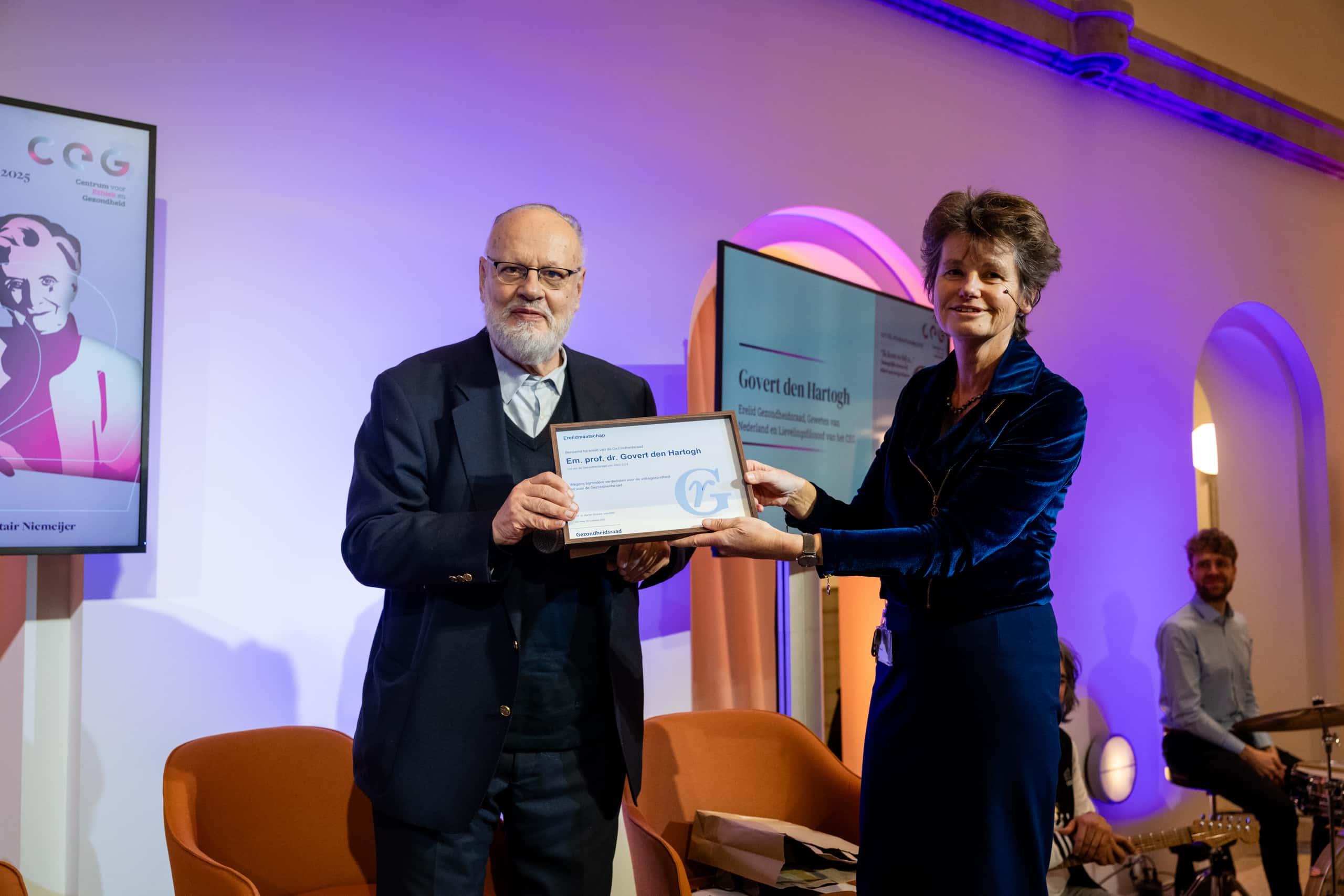 Karien Stronks nodigt Govert den Hartogh uit om op het podium te komen. Ze licht toe hoe hij aan de titel aartsvader van de ethiek is gekomen. Ze roemt hoe hij zich in zijn werk bij de Gezondheidsraad steeds luisterend en integer heeft opgesteld. Hierna benoemd ze hem tot erelid van de Gezondheidsraad. Govert spreekt zijn dank uit.Hij belicht hoe de gezondheidsraad ethiek altijd serieus heeft genomen en sluit af met de woorden dat filosofie de kern van het vak is.