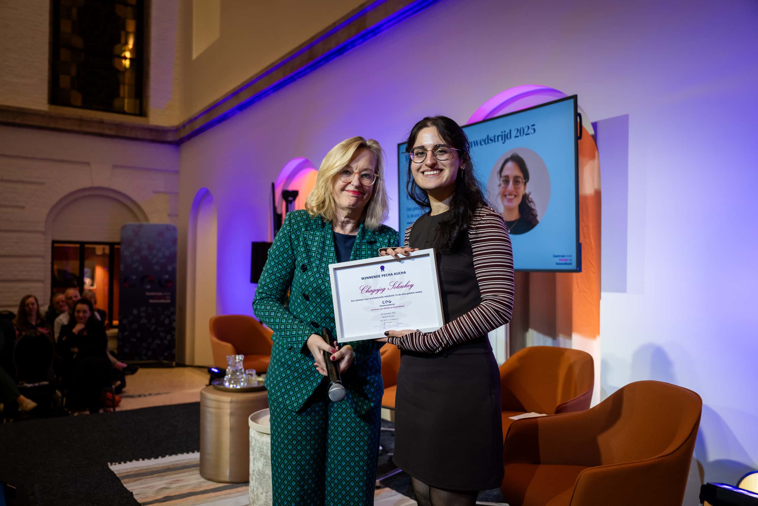 Alle drie de finalisten ontvangen een daverend applaus. Tijdens de pauze krijgt het publiek de kans om te stemmen door een knikker in een van drie vazen te doen. De vaas en dus de finalist met de meeste stemmen wint de ideeënwedstrijd. Chagajeg Soloukey is de winnaar. Zij krijgt van juryvoorzitter Jet Bussemaker de glimmende Waagschaal.
